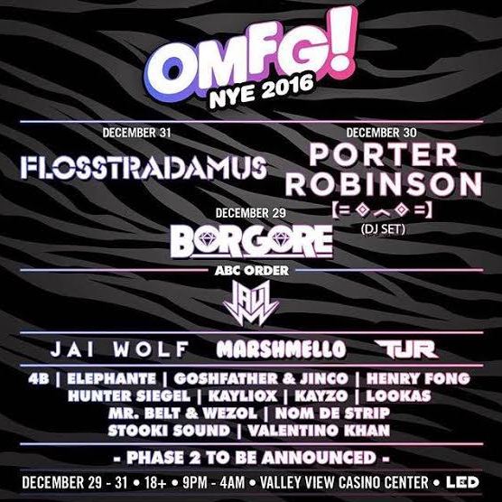 Where better to spend one of the biggest nights of the year than one of the biggest cities in the U.S? Join Flosstradamus, Porter Robinson, Anna Lunoe, Eric Prydz, Henry Fong, Alex Metric, Botnek, Wiwek, and other amazing acts for a three-day jamboree at OMFG NYE 2016 at the Valley View Casino Center.
