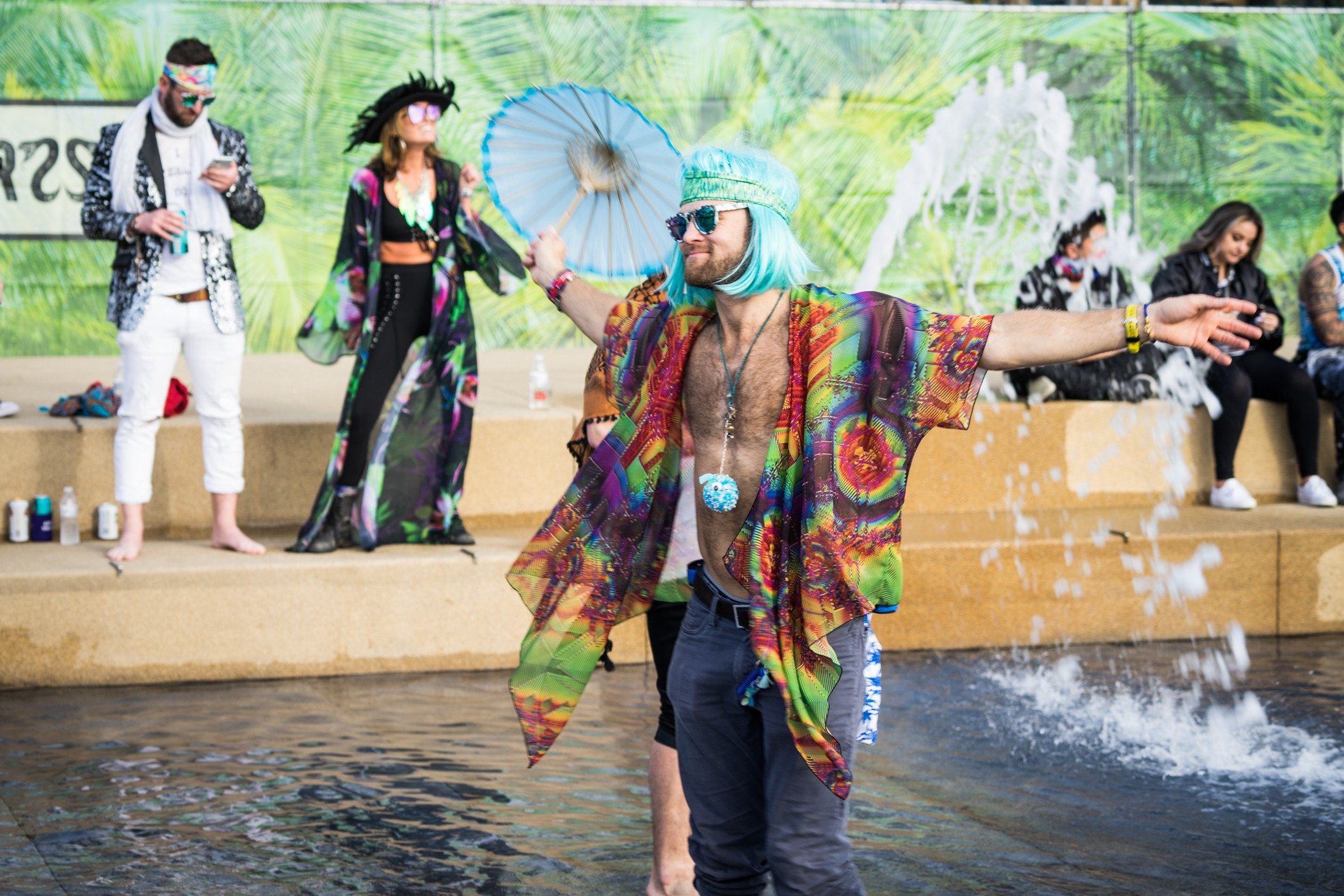 Let’s not leave out all the music enthusiasts who pretty much made CRSSD Fest for what it is. This year seemed to really bring out many peoples’ inner child by dressing up in costumes or wearing their favorite label clothing to representing the ‘House & Techno’ family jackets. Even though it stayed overcast on both days, it seemed to remain bright and cheerful with everyone’s’ vibrant energy. From splashing their feet in the water fountain to sharing laughs and hugs, there was never a dull moment.
