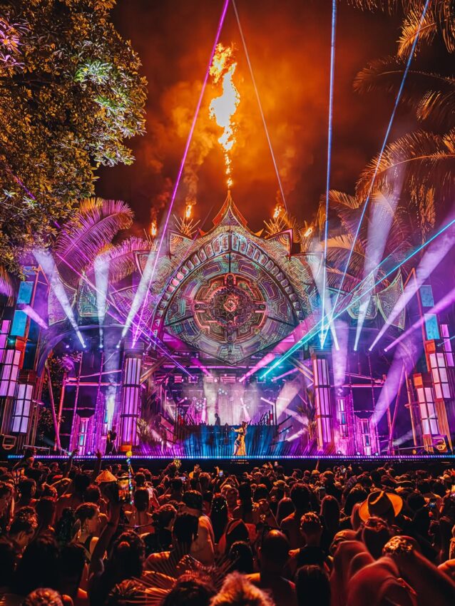 The Luna Stage served as Envision’s fiery centerpiece — a massive main-stage structure layered with psychedelic projection mapping, just the right amount of lasers, expert lighting, and bursts of fire that cut dramatically through the jungle night. The sound system transformed the dancefloor into a cathedral of bass, with the crowd equally sprawled across blankets or surging toward the stage like waves responding to the tide. Whether you liked every set or not was unimportant — you could always get hypnotized by the fire surrounding you in all corners.