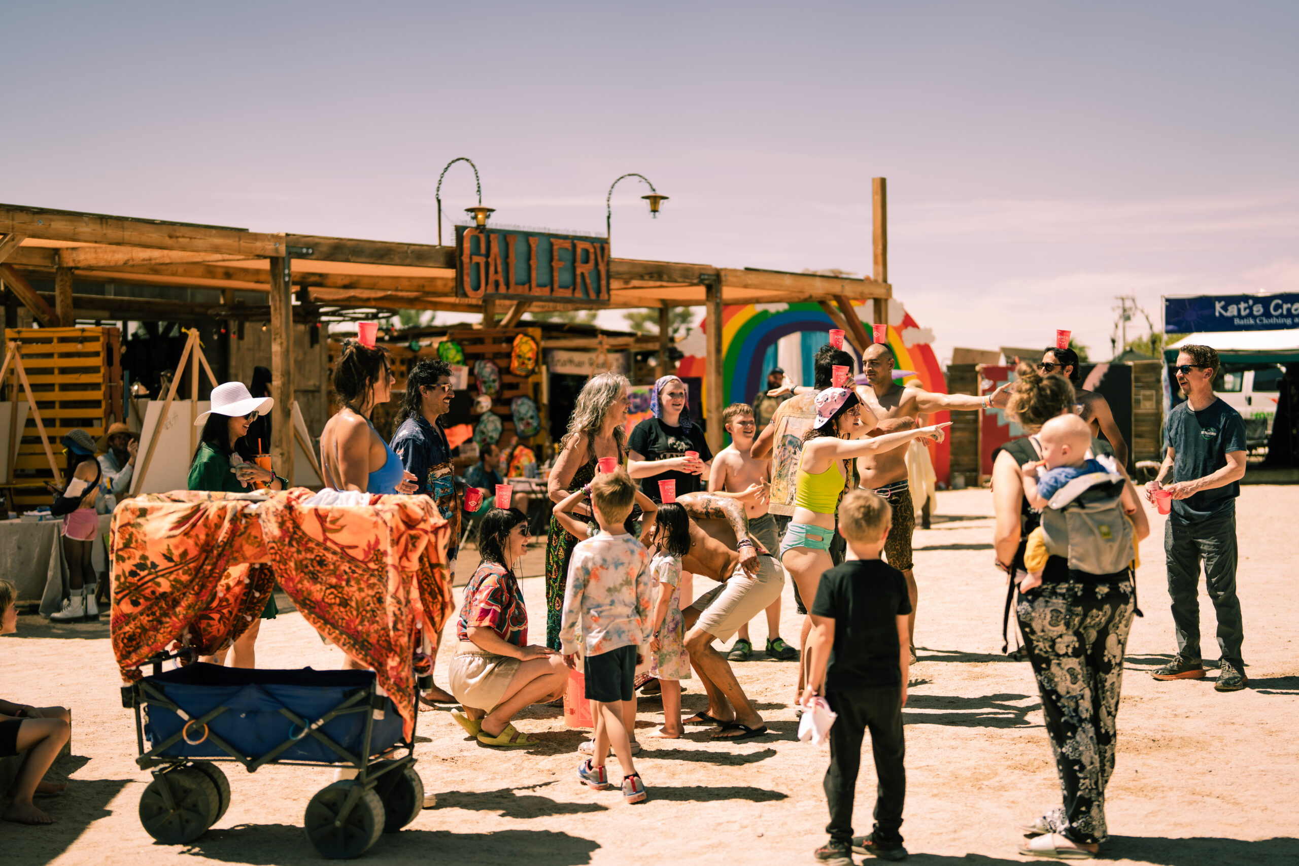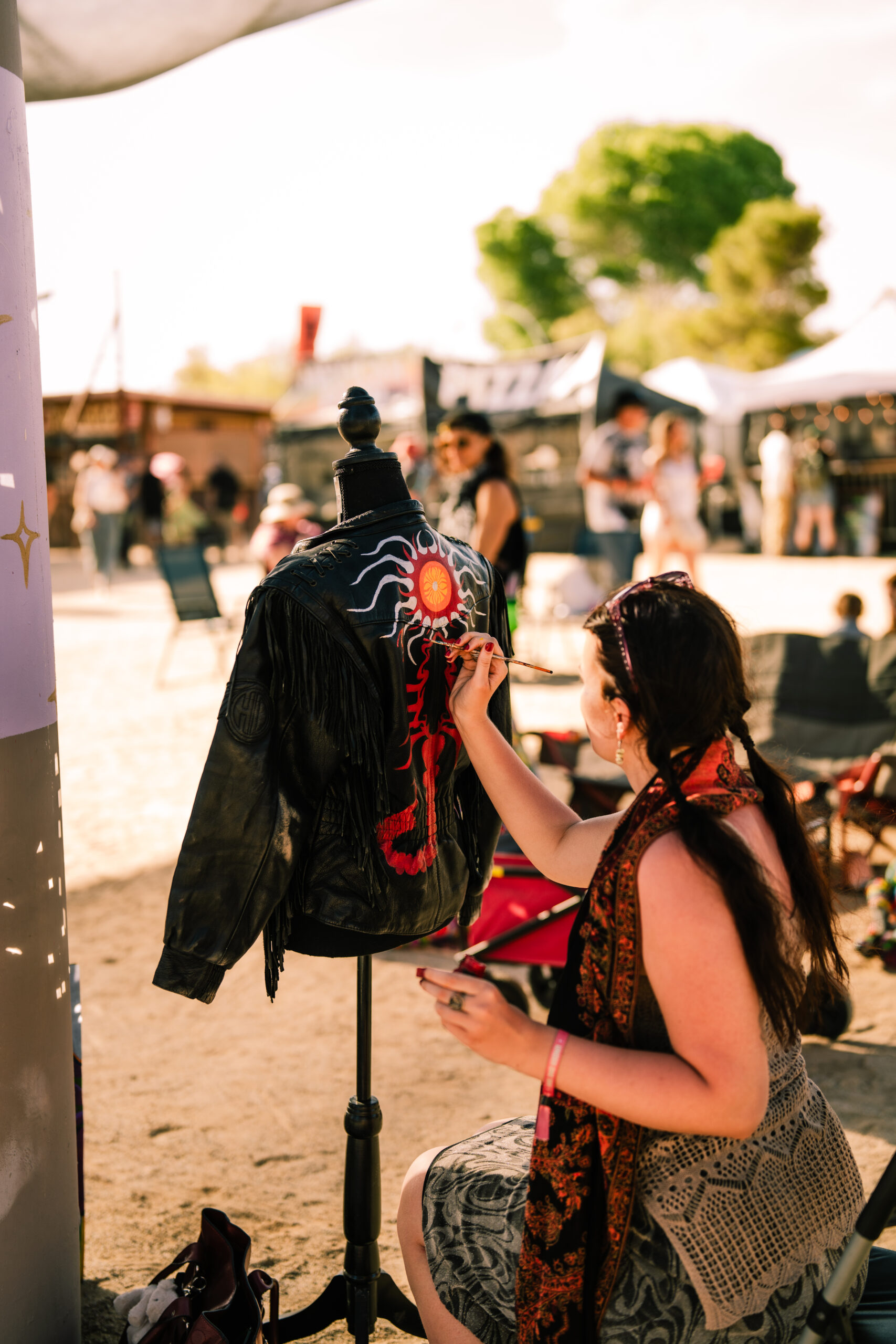 BioEnergy Therapist and Holistic Life Counselor Gilda Amid led a powerful Karmic DNA Workshop paired with a grounding Pu’er tea ceremony. Steffan Morris’ Hamsa Handpans Sound Journey invited us to drop into deep, resonant stillness – each note felt like a ripple in the soul. And throughout the grounds, a kaleidoscope of live painters and visual alchemists transformed blank canvases into desert-born visions.