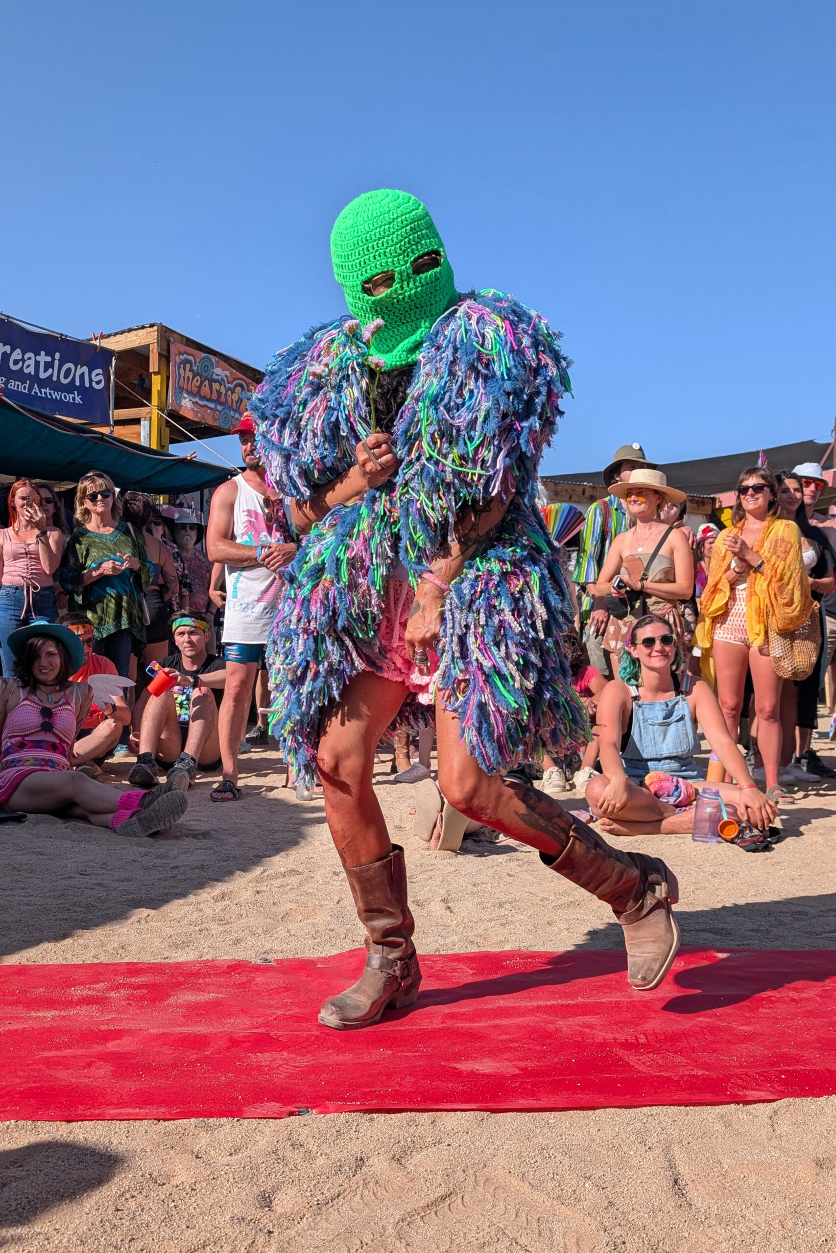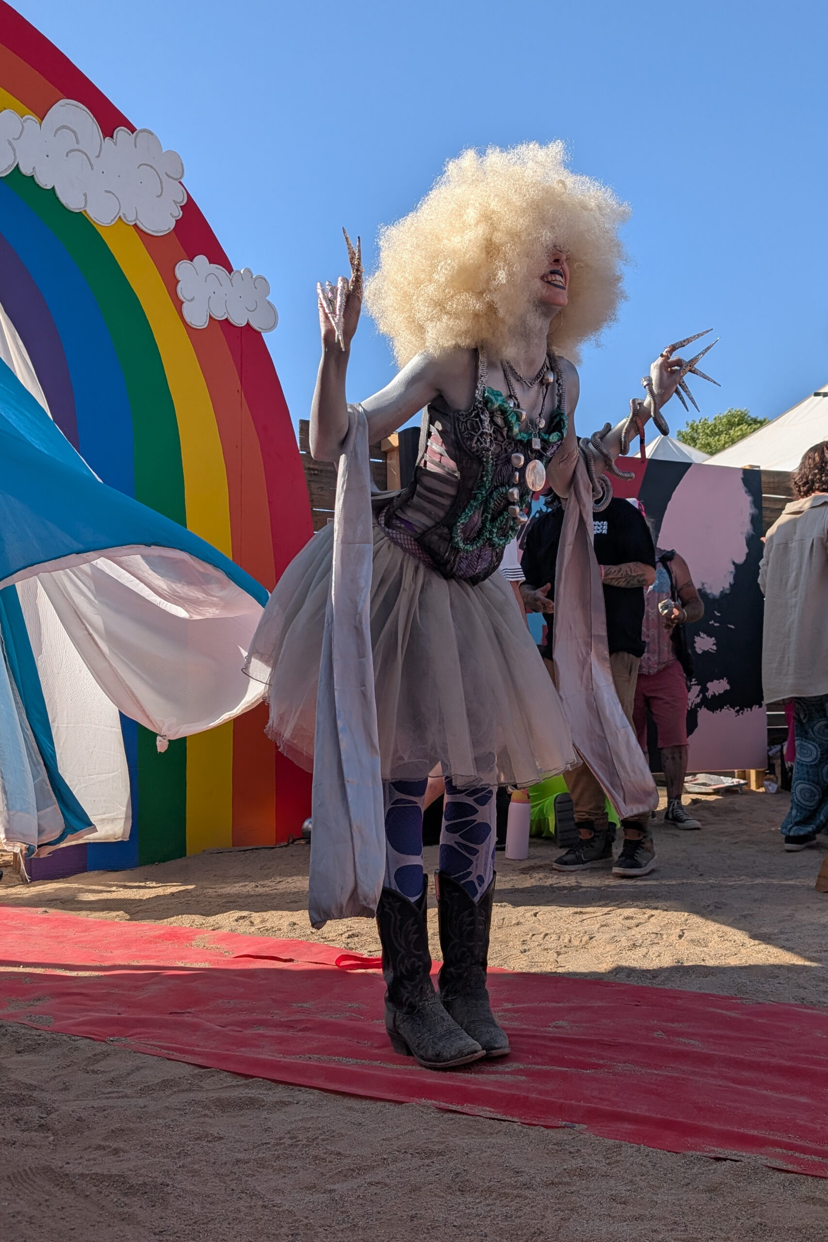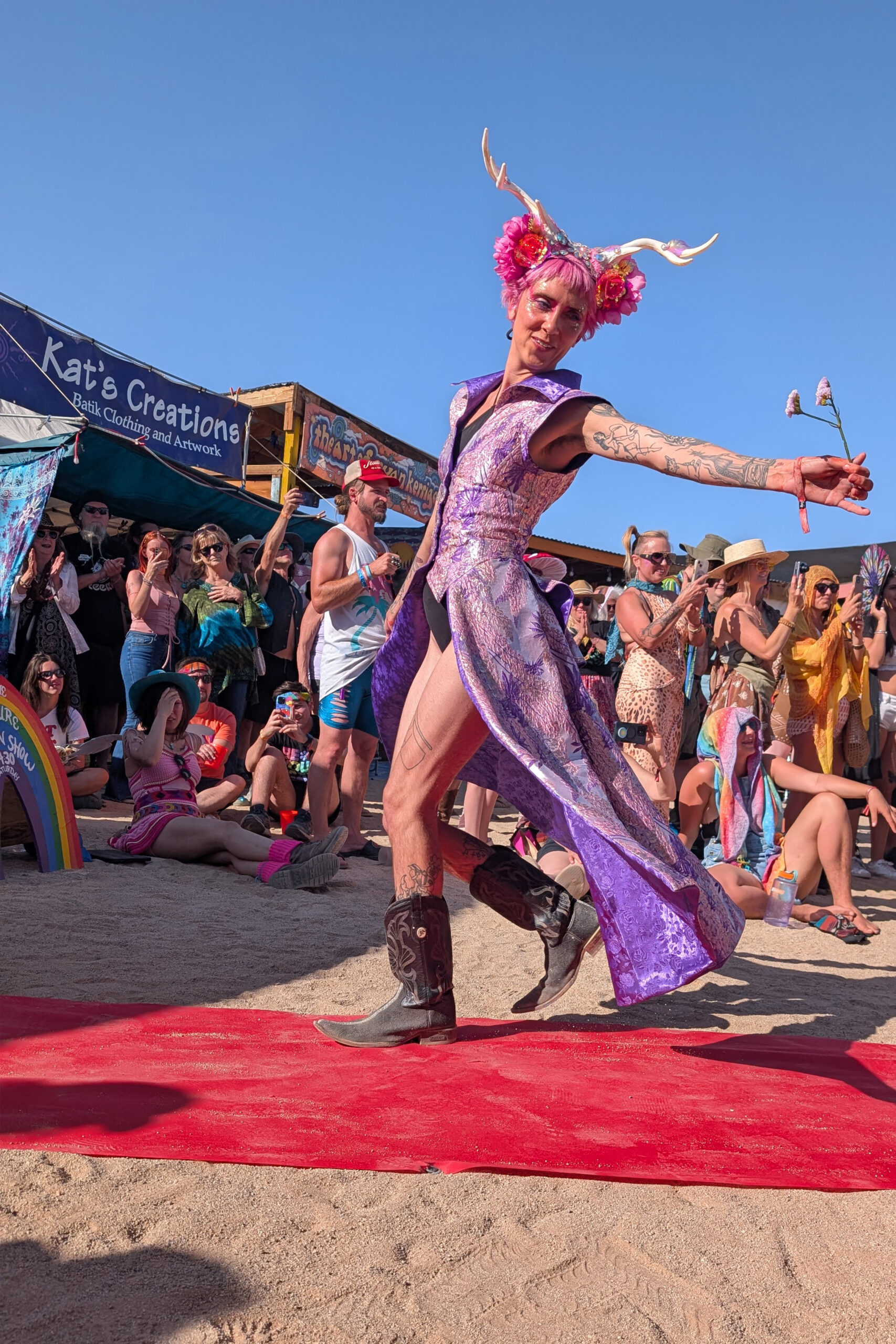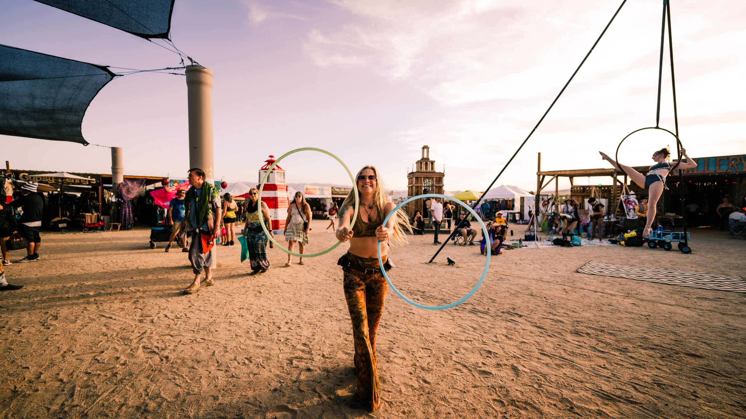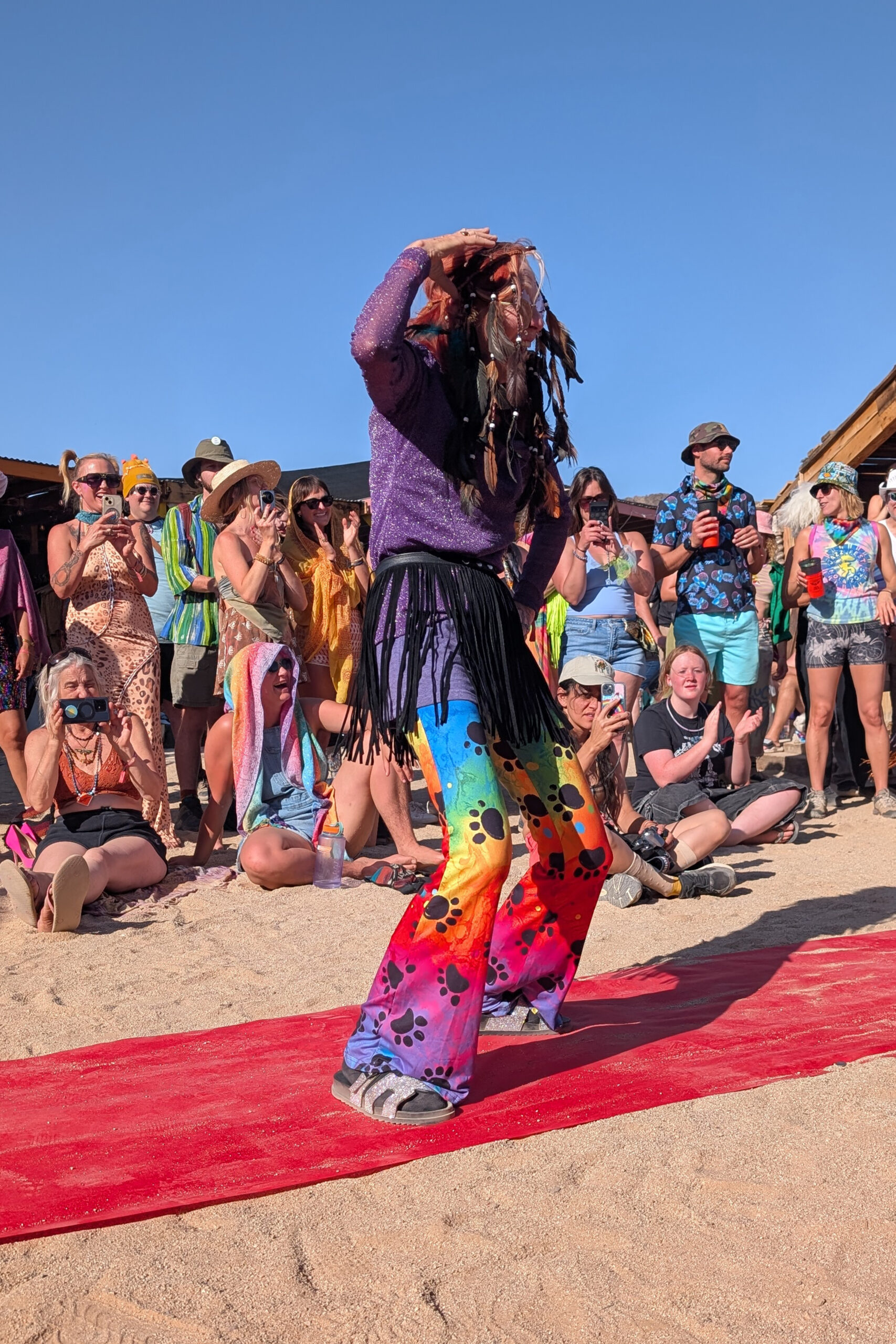 Everything here was still art for art’s sake. A child’s watercolor sunrise. A spontaneous didgeridoo performance echoing across the desert. Silk aerialists swirling through pink twilight. Musicians who played like they were whispering to the stars. Dancers who moved like their bones were made of wind.