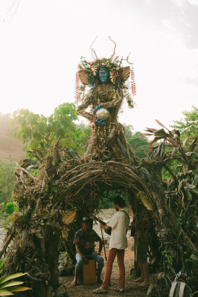 Art revealed itself the same way. Tucked into the landscape stood “Held in Becoming” by Briana Hill and lead designer Armando Severiano, a towering wooden goddess constructed from repurposed materials, holding a disco ball like a heart suspended in time. The piece carried a quiet gravity. Built from a deeply personal process of shedding and reconstruction, the installation embodied the space between who you were and who you’re becoming. What made it resonate even more was how it came to life in a mere five days through community collaboration and the willingness to be witnessed in the middle of transformation rather than at the end of it.