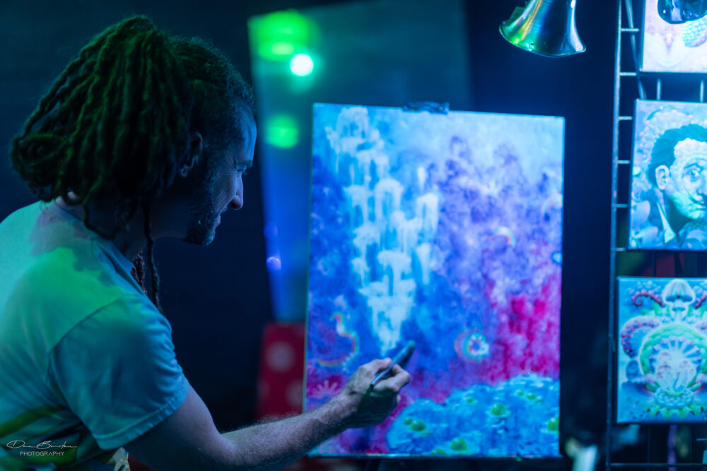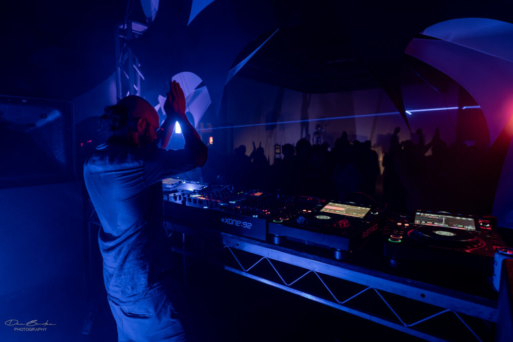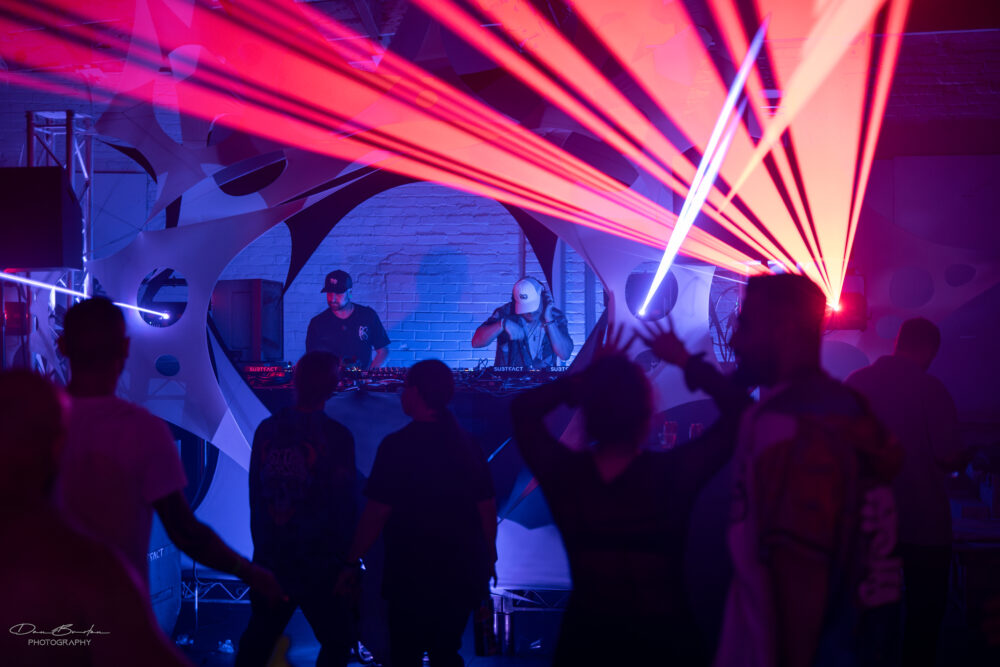The production – from Avery Lasers‘ meticulously synchronized light show to Subtract‘s perfectly-tuned sound; from Outfits & Oddities‘ delightfully weird warehouse to the mixture of high art, live painting, and Harmonic Light‘s quantum light painting; from Psylotus’ stage deco to the bonkers but beautiful crowd…